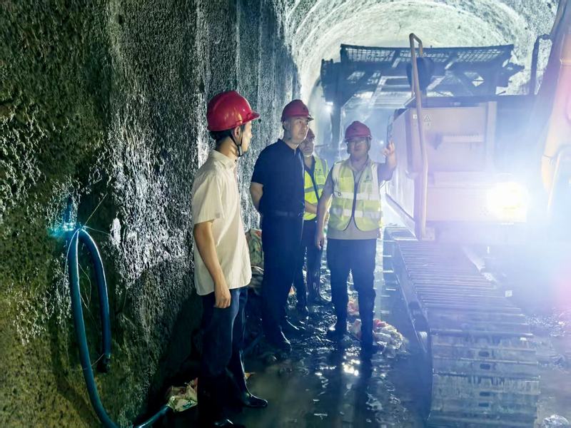 袁斌深入施工一線,實(shí)地查看了V標(biāo)段沱江管橋、黃巔咀隧洞和Ⅳ標(biāo)段百里沖綜合加工廠、新窩咀隧洞等,了解當(dāng)前各工區(qū)的施工進(jìn)展情況。施工現(xiàn)場(chǎng)負(fù)責(zé)人就工程進(jìn)度、存在問(wèn)題及應(yīng)對(duì)措施做匯報(bào),袁斌進(jìn)一步詢問(wèn)項(xiàng)目下一步施工計(jì)劃并提出意見(jiàn)建議。